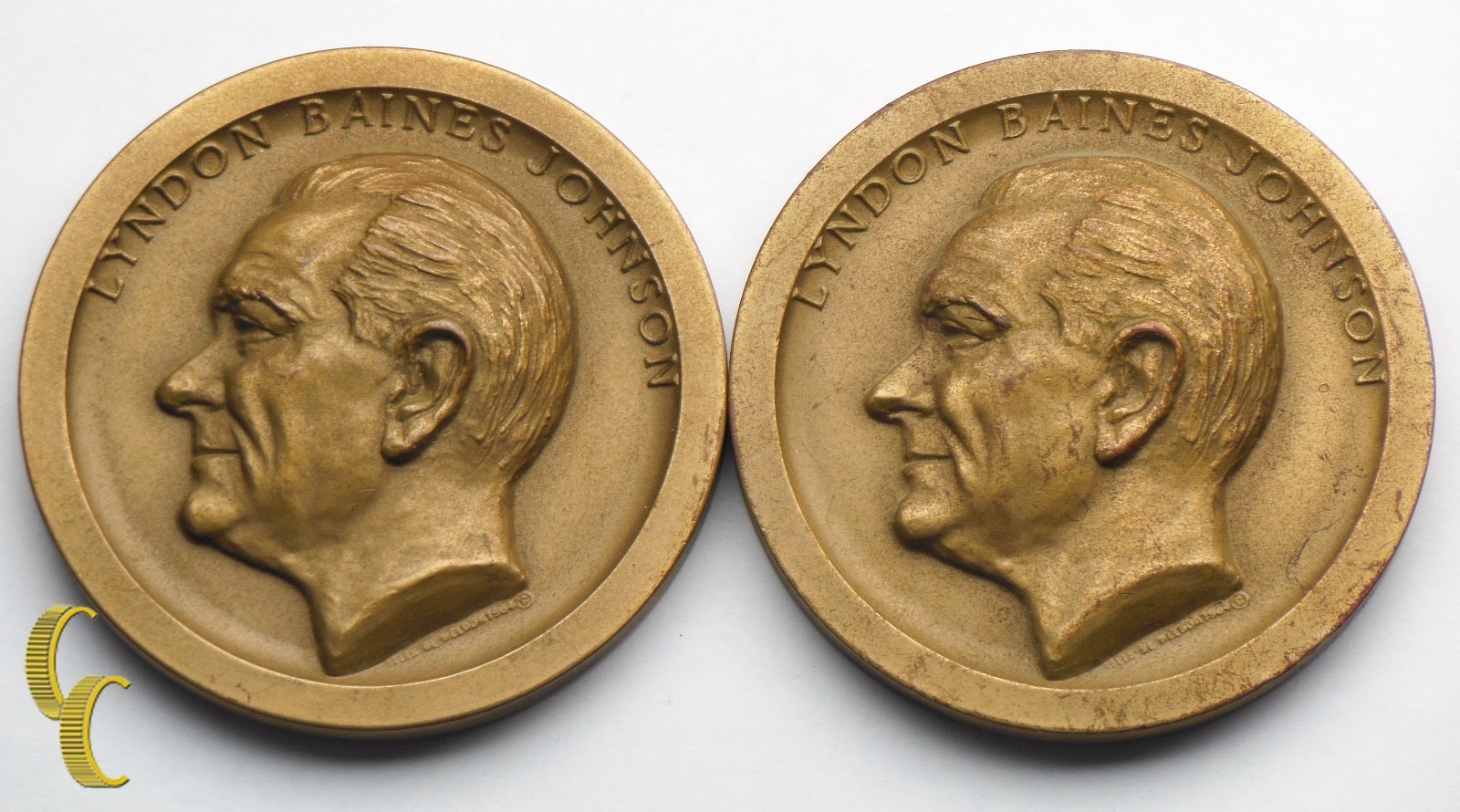 Distinctive Art Co Lyndon Johnson Présidentiel Inauguration Médaille 2 Pièce Lot