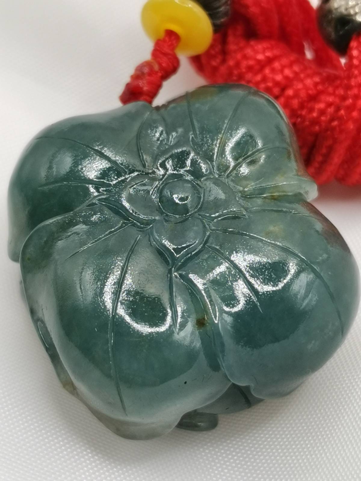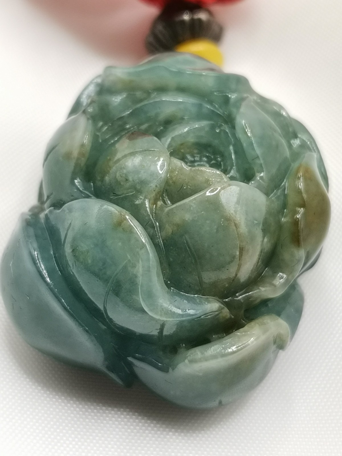 This jadeite pendant is an exceptionally rare and exquisitely handcrafted piece of art. It is crafted from icy green jadeite, and through the skilled artistry of craftsmen, the jadeite has been meticulously carved to depict the flourishing beauty of peony blossoms. This exquisite piece comes with a certificate verifying its authenticity as Grade A natural jadeite. Measuring approximately 26.90mm 24.50mm 18.50mm and weighing approximately 28.30 grams, equivalent to 141.50 carats, this pendant is a testament to the unparalleled craftsmanship and beauty of jadeite. Jadeite, renowned for its vivid colors and translucency, is highly prized in the world of gemstones for its rarity and beauty. This pendant not only embodies the preciousness of jadeite but also serves as a masterpiece of carving art and jewelry craftsmanship. The peony, a traditional symbol of wealth and prosperity in Chinese culture, carries profound cultural significance. By featuring peony blossoms in its design, this pendant symbolizes the owner's aspiration for a life filled with abundance and happiness. Thus, beyond being a mere adornment, this jadeite pendant embodies profound cultural symbolism and serves as a talisman for good fortune and auspiciousness.