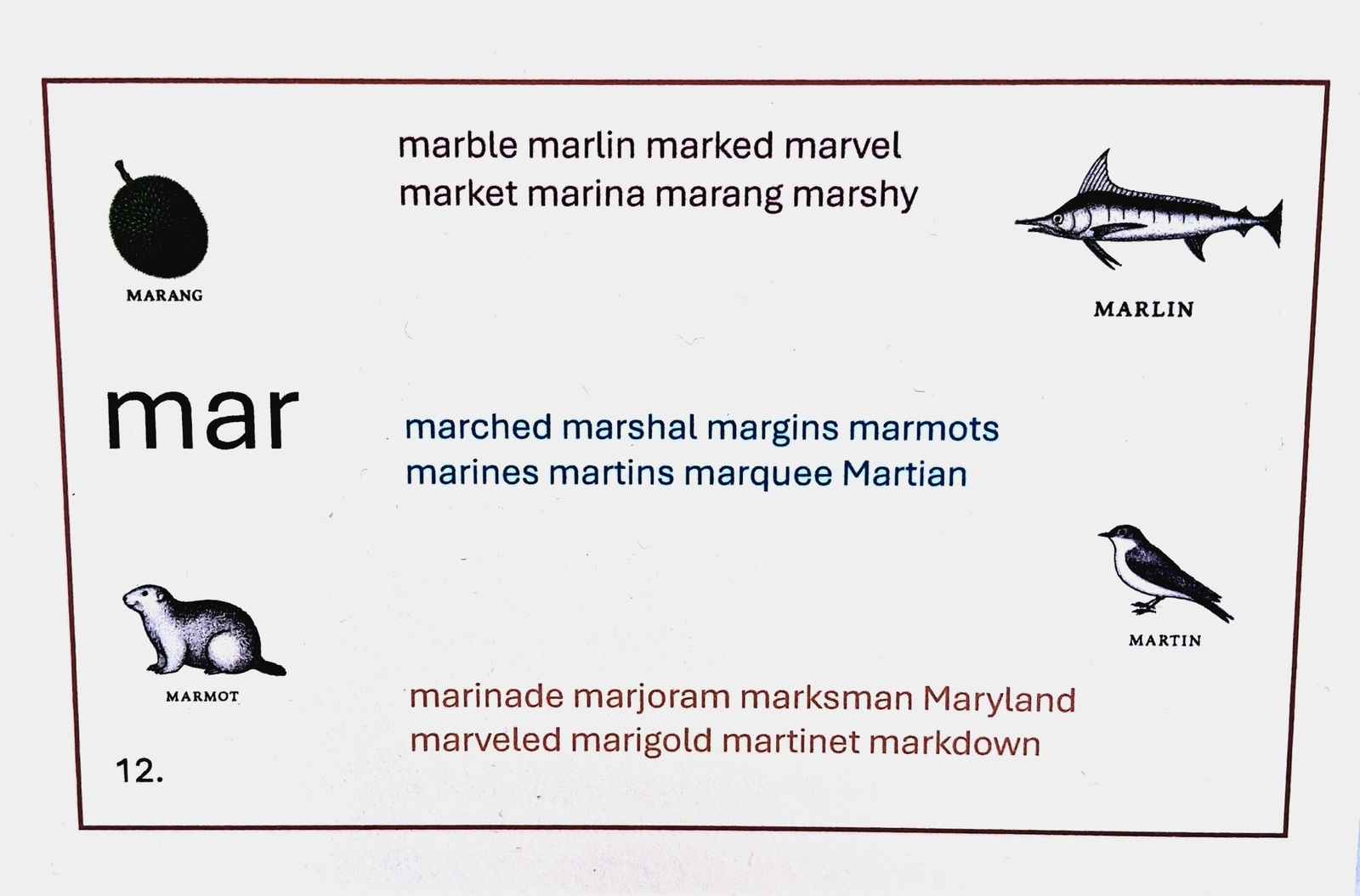1. Each card has the same 3 letter word combination for all 24 words on a card