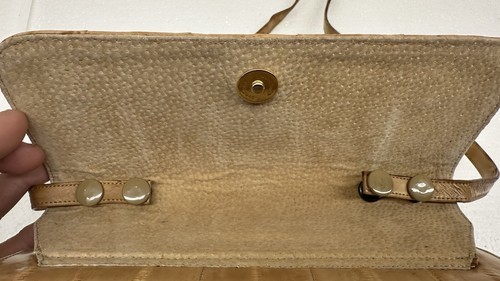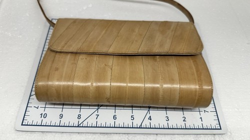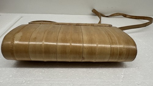 Shoulder Bag Clutch Crossbody Genuine Eel Skin Leather Tan Vintage Soft Smooth