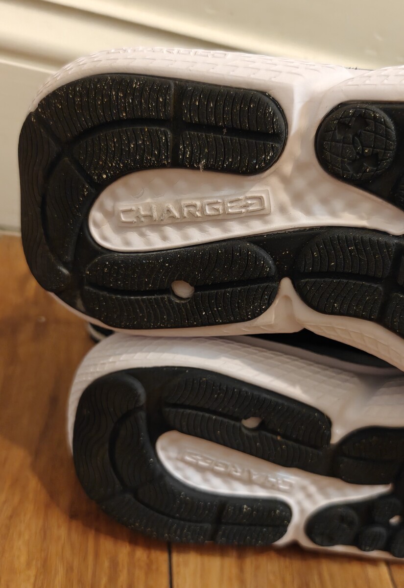 Lightly used and in excellent condition! Sleek black and white design with Under Armour’s signature Charged Cushioning for comfort and support. Perfect for running, training, or everyday wear.