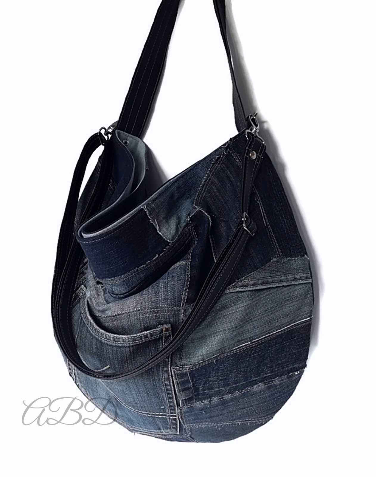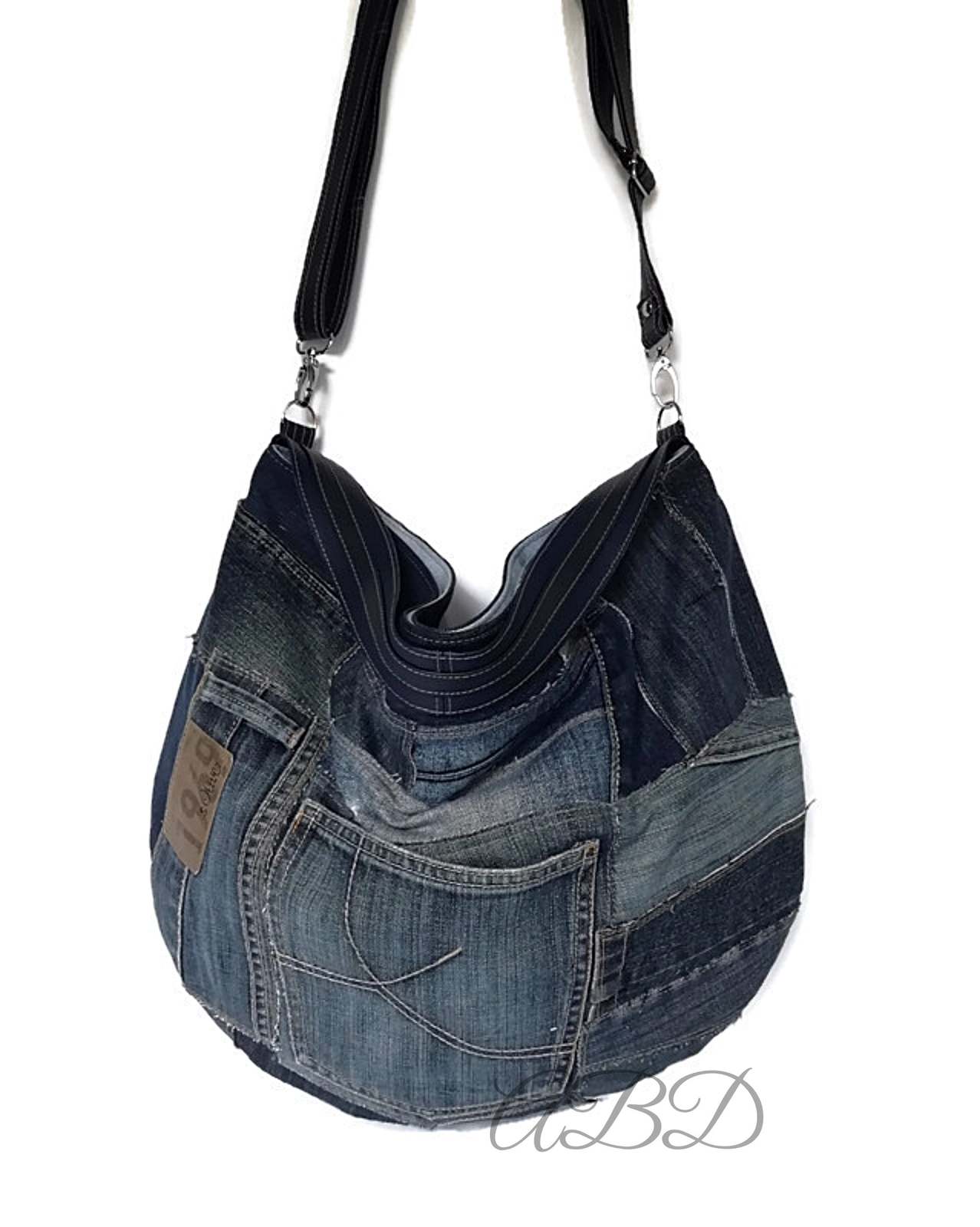 Large Recycled Denim Bag: Jeans Handbag with Adjustable Strap