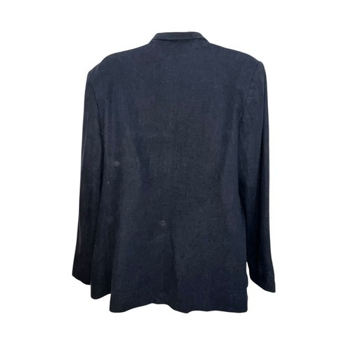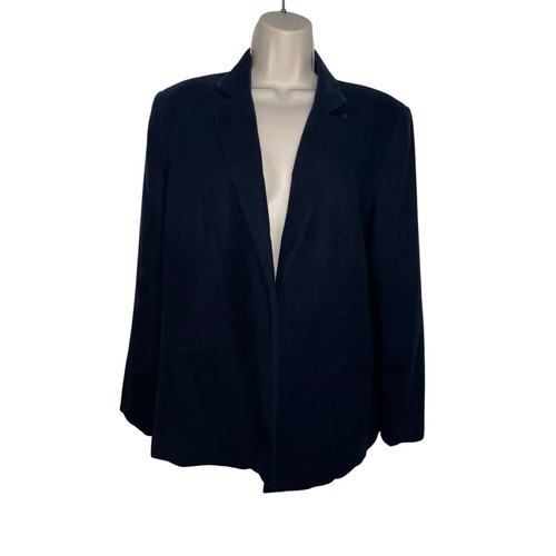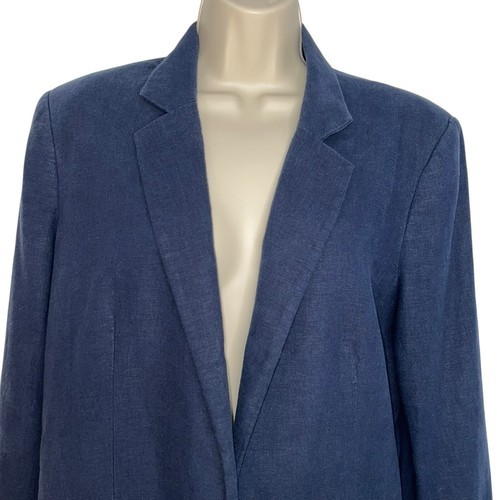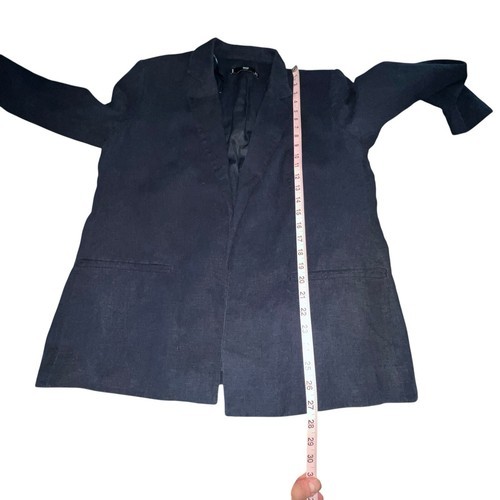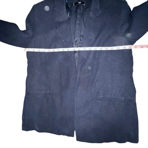 MNG BY MANGO BASICS NAVY BLUE LINEN BLEND OPEN BLAZER JACKET WOMEN SIZE LARGE