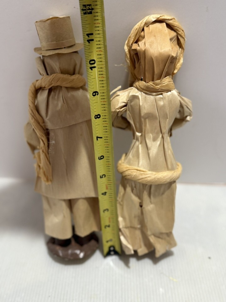 Corn Husk Caroller figures Taiwan woman and man in top hat hand-made 12โ Gift
