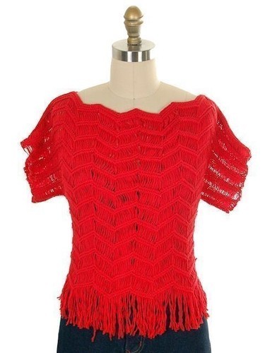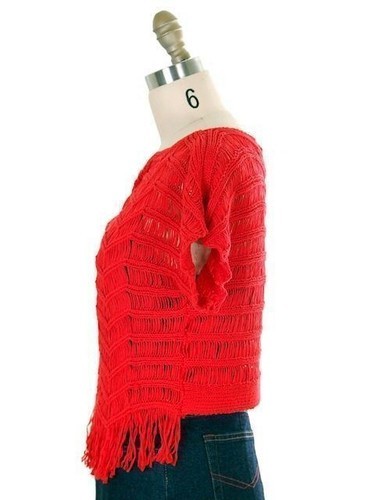 VTG 80s Organically Grown Ramie Fringe Sweater Top Cropped S
