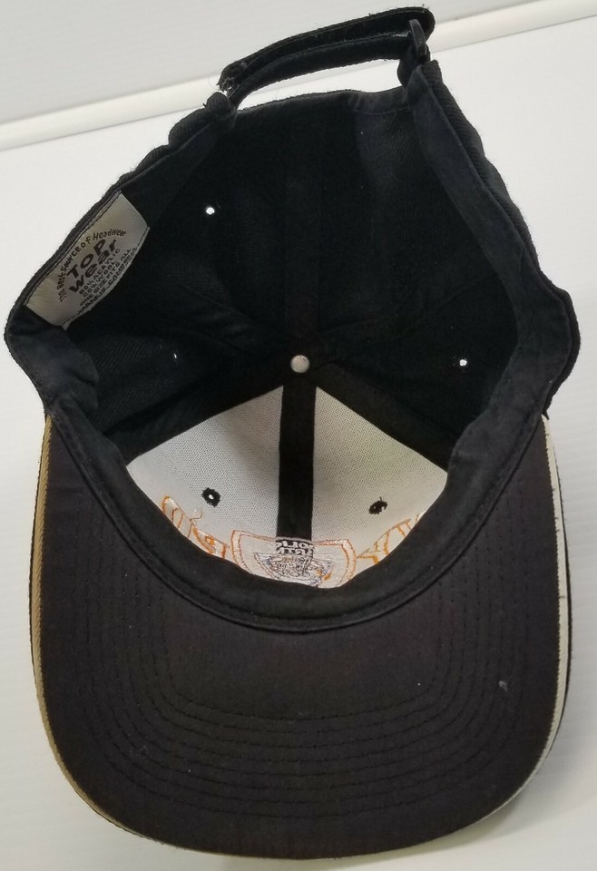 Hat is in overall good, slightly used condition. While in storage, it developed some discoloration on the edge of the bill. Please see pictures.