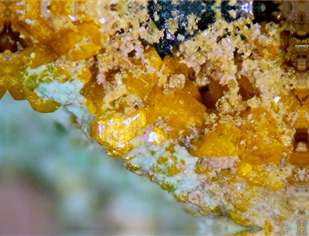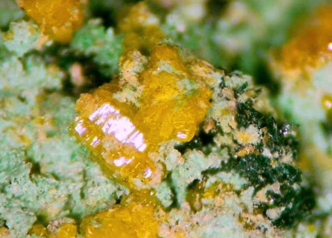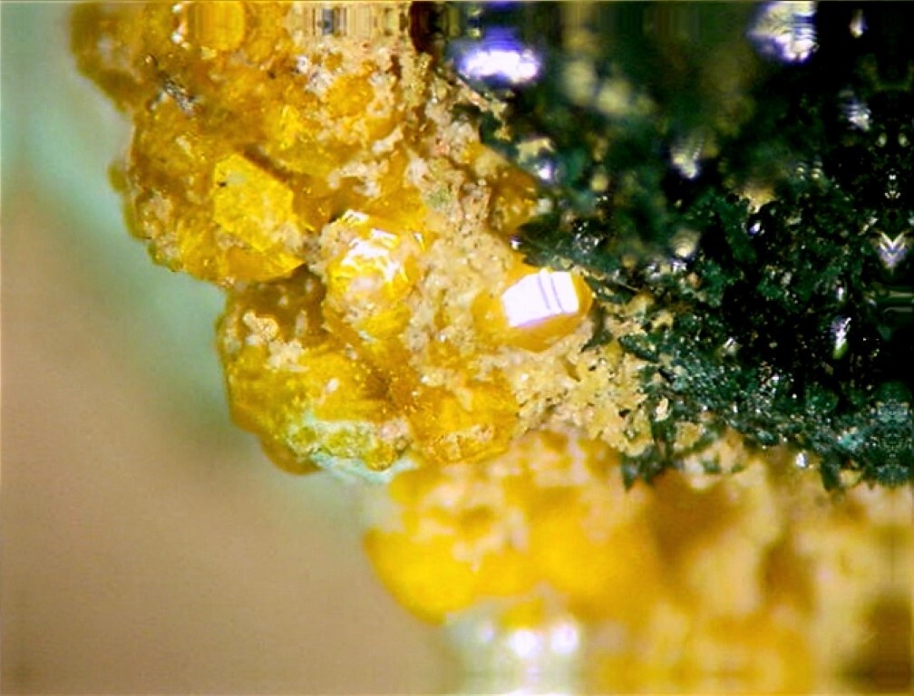 Fantastic deep yellow crystals of billietite showing great color and form, with deep green crystals of vandenbrandeite. Not one of the more commonly seen species from Musonoi, but perhaps my favorite. From the collection of Joseph Urban, for whom the mineral jurbanite was named.