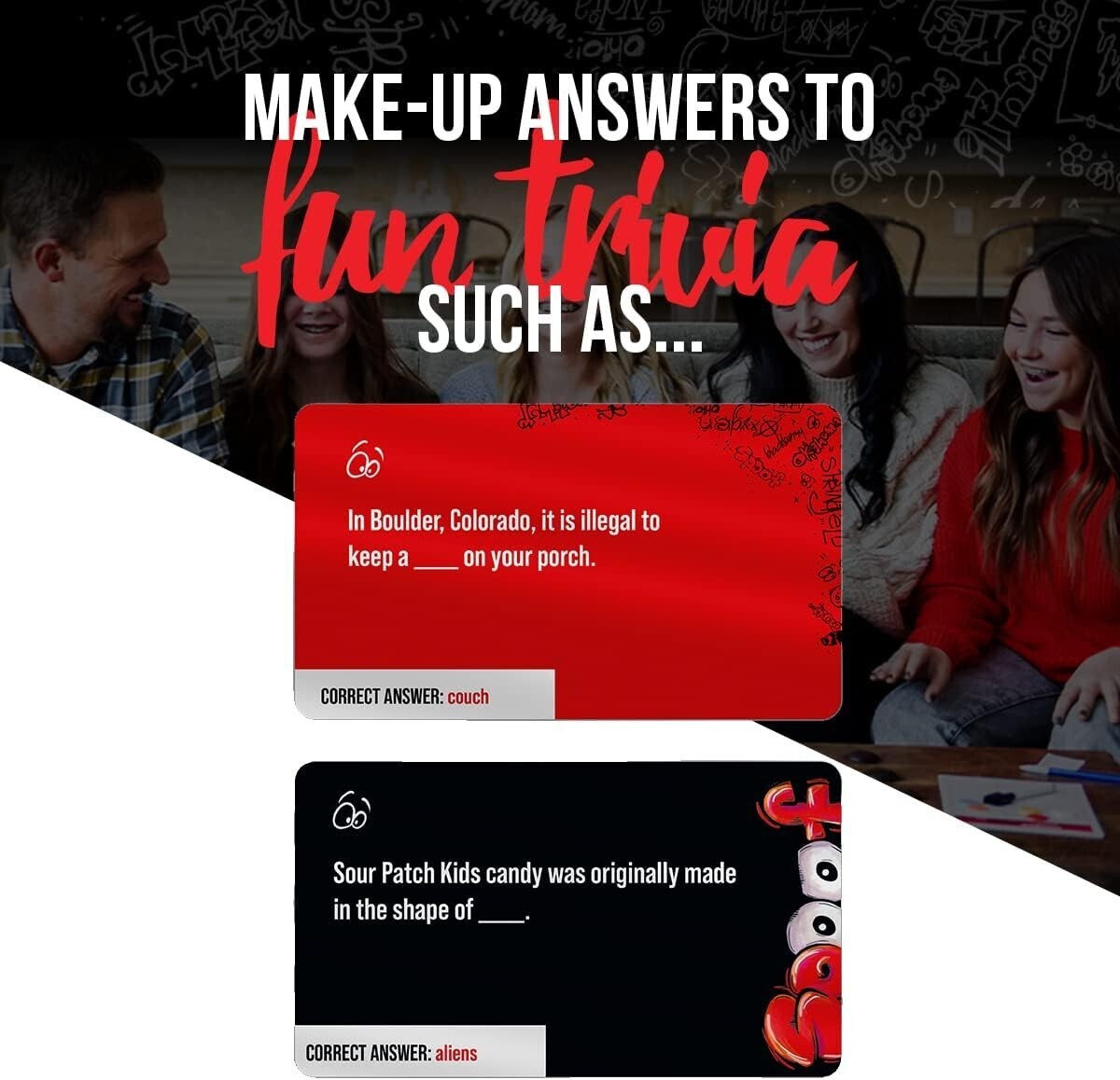 Be Creative Fool Your Friends: "Spoof" your friends by making up clever, fake answers to fun trivia such as "_______ is the national bird of Japan." "_______ is illegal to have on your porch in Arizona." Be careful with the correct answers!
