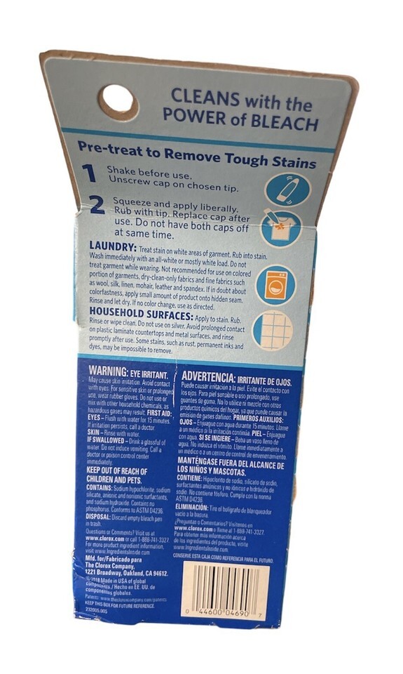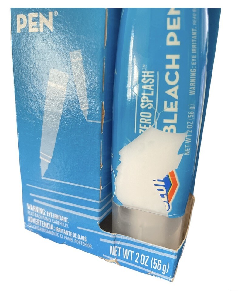 Clorox Bleach Pen Gel Whites Dual Tipped 2 Oz Zero Splash New Discontinued. This is for one pen only. Box does have shelf damage and wear. Paint on pen have peeling. Please see photos for conditions.