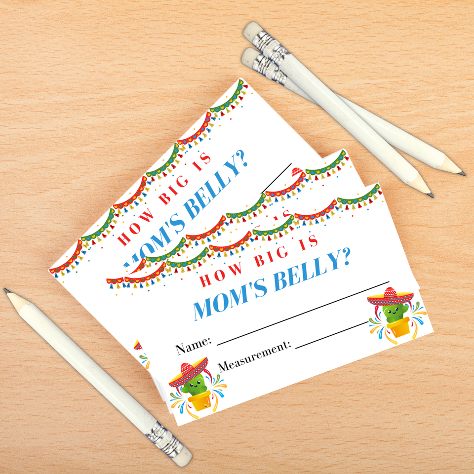 How Big is Mommys Belly Game cinta para medir la panza Measure the Belly Baby Shower Game 58 Piece for 50 Players Fiesta Cactus cielito lindo baby shower Game.
