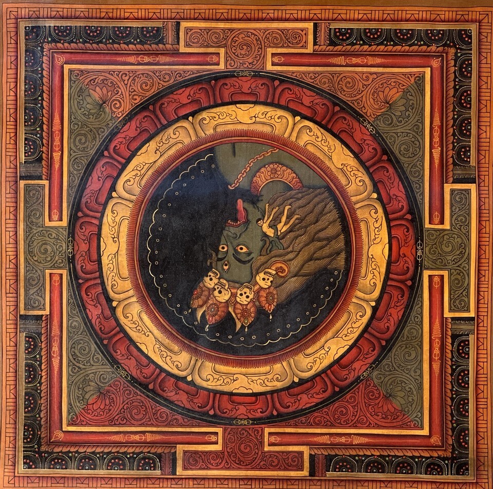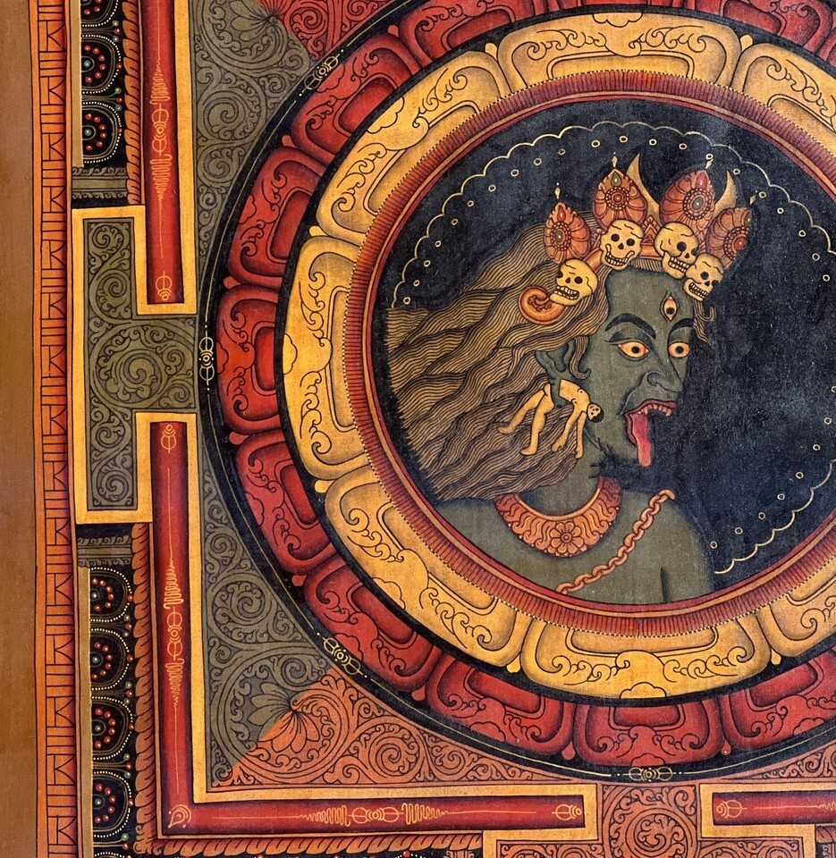OIL VARNISHED SRI YANTRA MAHAKALI MANDALA ORIGINAL HINDU ART / THANGKA PAINTING