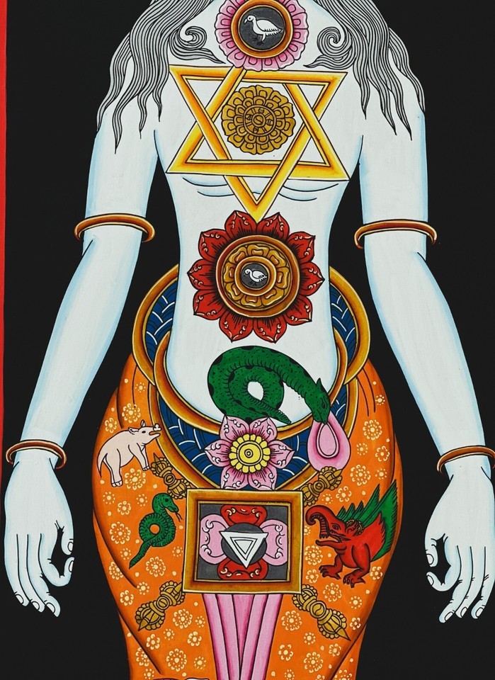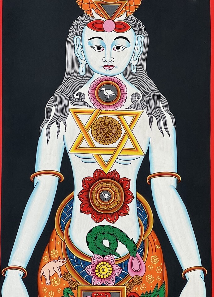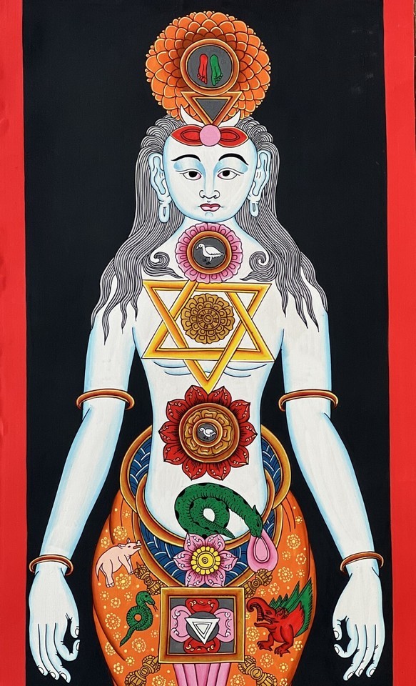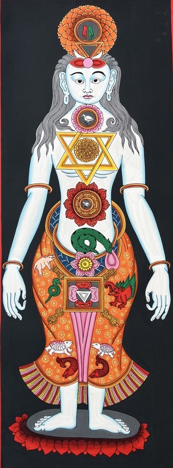 7 YOGIC CHAKRA/ MALE BODY KUNDALINI HEALING ORIGINAL TIBETAN THANGKA PAINTING