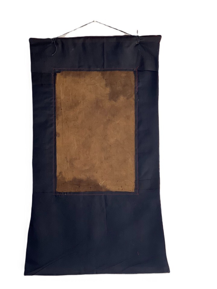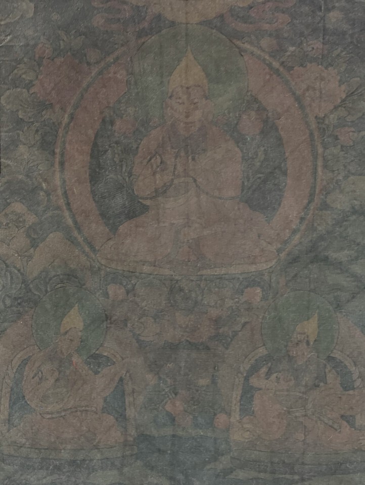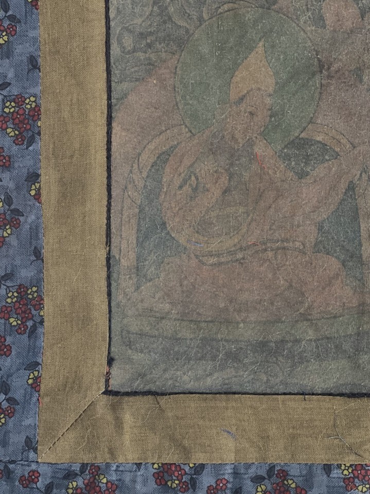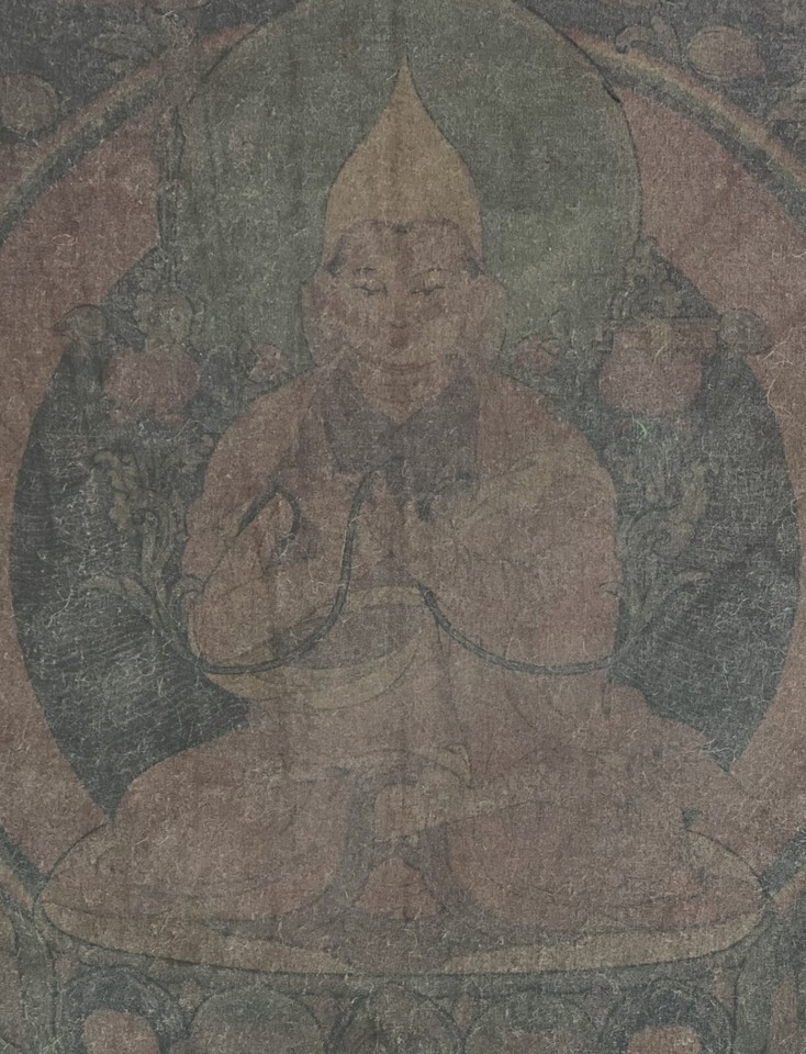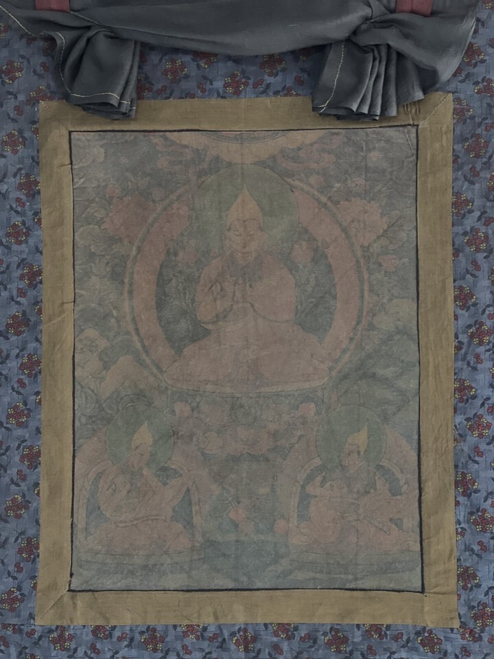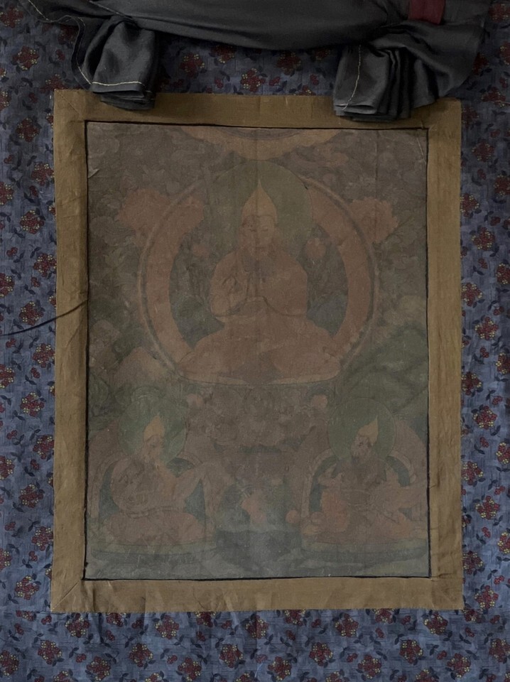 VINTAGE CHONGAPA/ JE TSONGKHAPA TIBETAN THANGKA PRINT WITH COTTON BROCADE