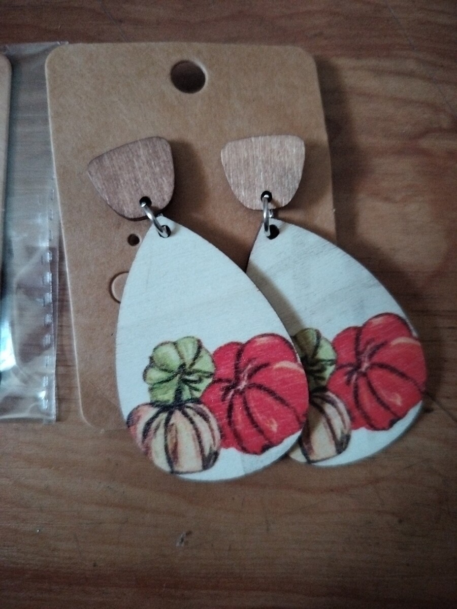 All 3 pairs are BRAND NEW. The oval pair with pumpkins doesn't have a wrapper because it got torn, but the earrings are brand new.