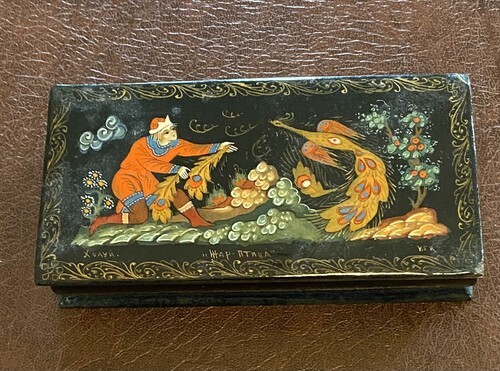 Hand painted Wooden Box by Dimitry Zhukov a graduate of the Abramstevo Art School. The subject material of this box is of "Child with her Art". The artwork depicts a little girl with her artwork walking with her dog. Ornate design around the sides of the box. The size of the box is 4.5 x 3.5 x 2.5 inches. ( 11.5 x 9 x 6 cm). Signed by the artist Zhukov. Attention Europe and Asia customers please be aware standard postage can take from 7-45 business days to arrive. If you need the item faster please select another mailing option. Please contact us with any questions.