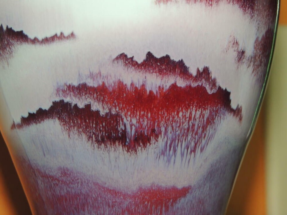 Chinese Vase 8.5" Jun type Flambe Blue Purple Red Glaze Porcelain Marked Vintage