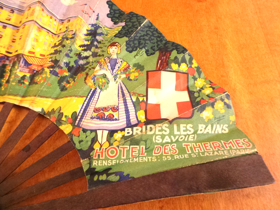 2 Sided French Advertising Fan Brides-les-Bains, Hotel Thermes, L. Philippi 1930