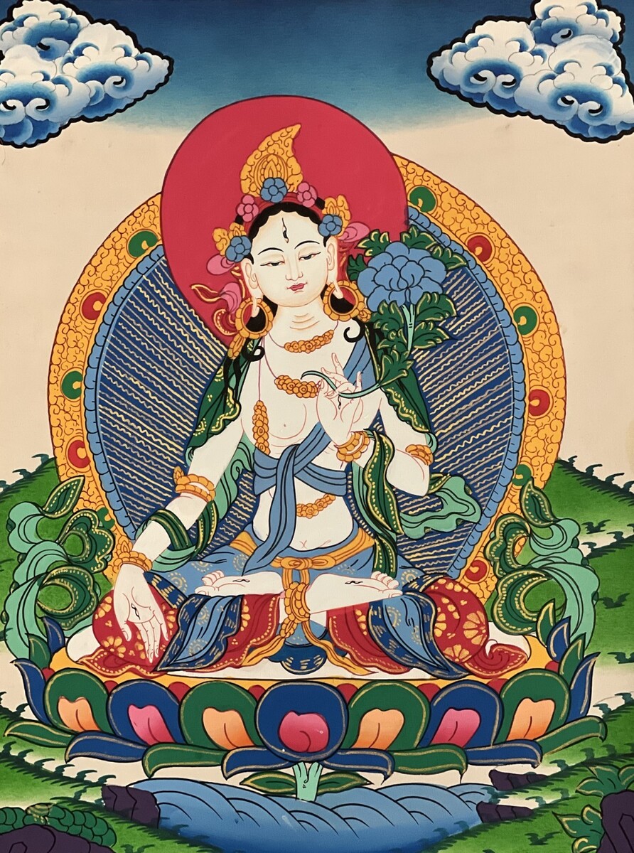 HAND-PAINTED White Tara Tibetan Thangka and 50 similar items