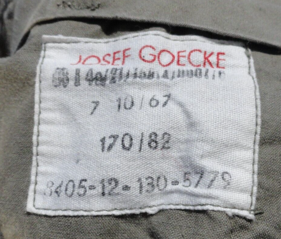 1967 JOSEF GOECKE GERMAN MILITARY CARGO GREEN WOOL PANTS 33X27 8405-12-130-5779