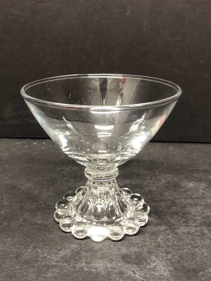 2 Anchor Hocking BOOPIE DESSERT SHERBET Glasses BUBBLE FOOT Vintage Beaded Clear