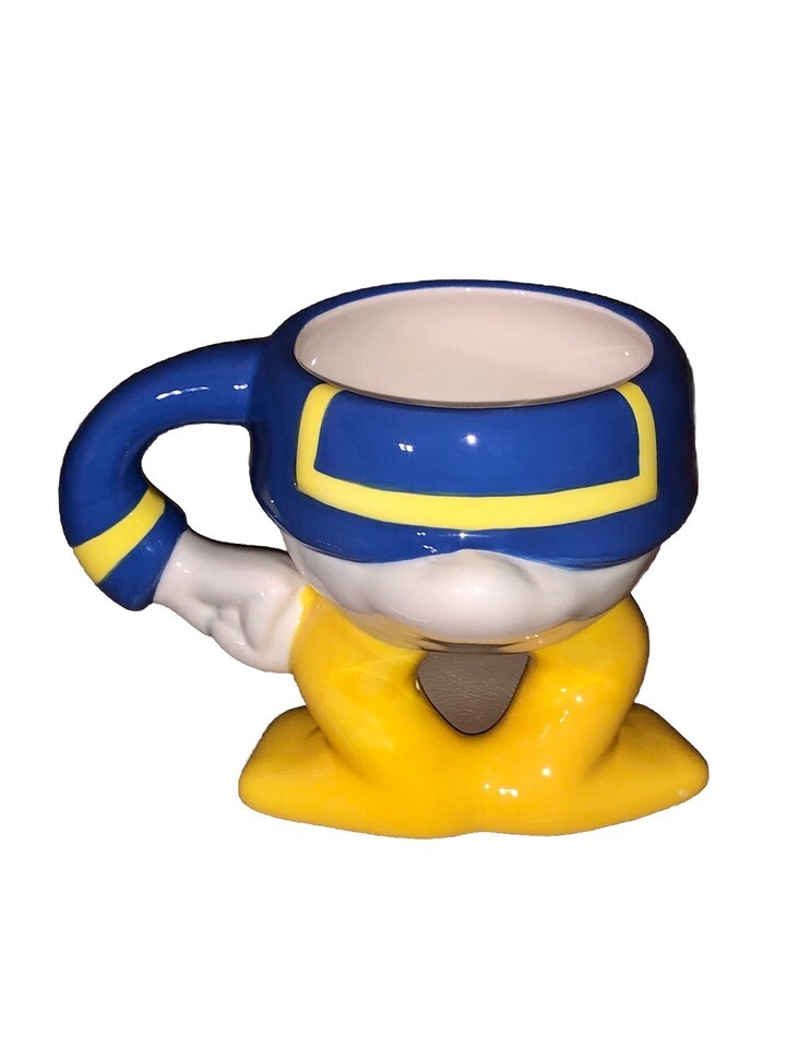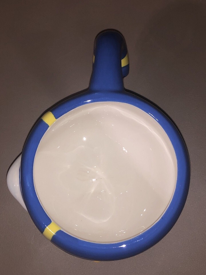 This exclusive Donald Duck theme park coffee mug is a must-have for any Disney collector. With its 3D design and authentic signature stamp, this white, blue, and yellow mug is a unique and vintage collectible item from 1993. Perfect for enjoying your favorite beverage while showcasing your love for Disney Parks and the beloved character of Donald Duck. Ideal for both display and practical use, this mug is a special addition to any Disney-themed collection. Please note that it is not microwave or dishwasher safe and should be hand washed for maintenance.