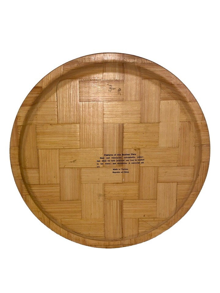 This Vintage Handpainted Asian Geisha Girl Goddess 13? Round Woven Bamboo Tray is a unique and charming piece of serveware. Made of bamboo with a handpainted Asian design, this medium-sized tray features a round shape and multicolor palette. Perfect for all occasions, this original serving tray adds an oriental touch to any kitchen or dining area. Its vintage charm and natural finish make it a standout piece for collectors or anyone looking to add a touch of Asian-inspired style to their home decor. Made in Taiwan, this tray is a beautiful and functional addition to any collection.
