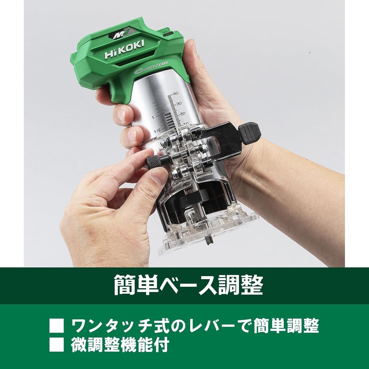 Features convenient functions to support your work, including a speed adjustment dial, one-touch lock lever for base adjustment, and a dust collection adapter included as standard.
