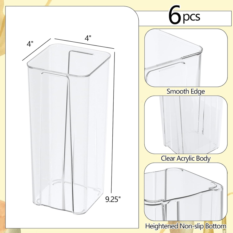 PRODUCT DETAILS: Include 6 pcs acrylic vases for centerpieces, each of exquisite glass vase measures 4"L x 4"W x 9.25"H