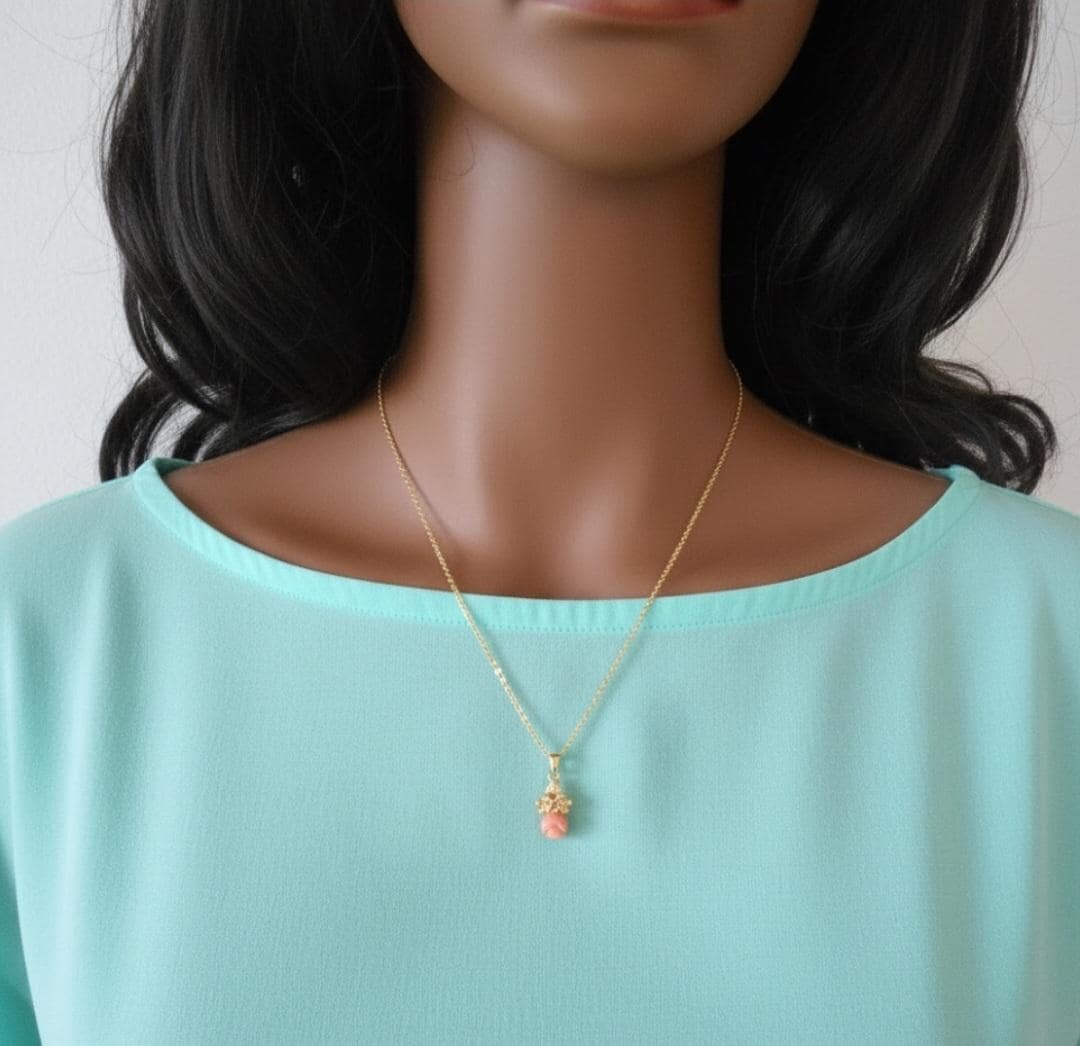 Carved Coral & Gold Chain Delicate Pendant Necklace