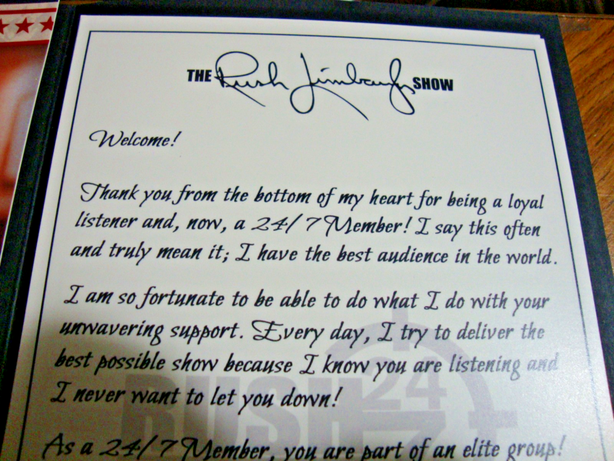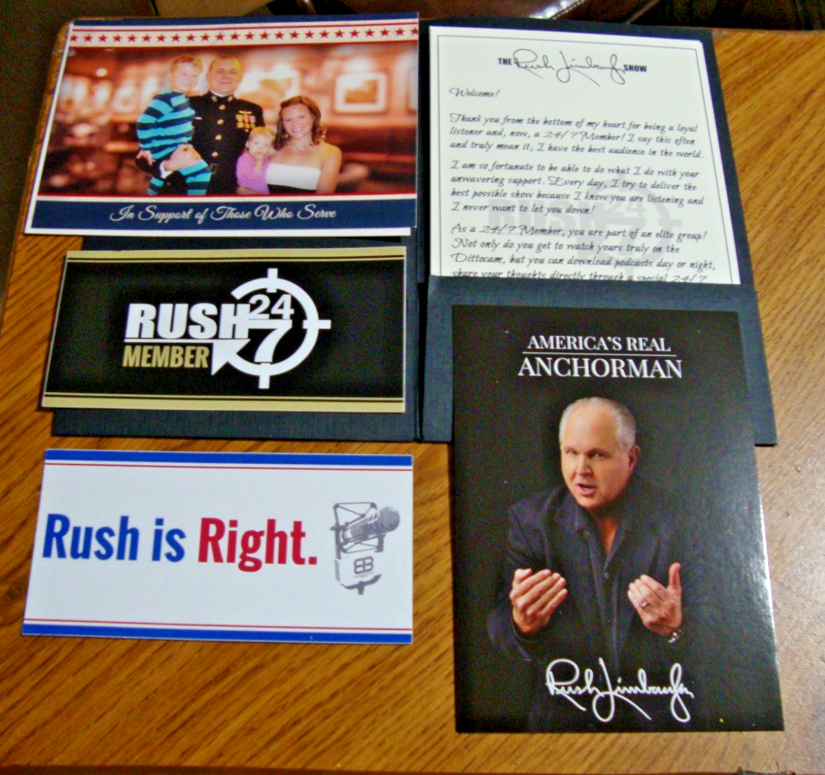 RUSH LIMBAUGH 'DITTOHEAD' ENROLLMENT ACKNOWLEDGEMENT WITH MAILER TWO MINT ISSUES