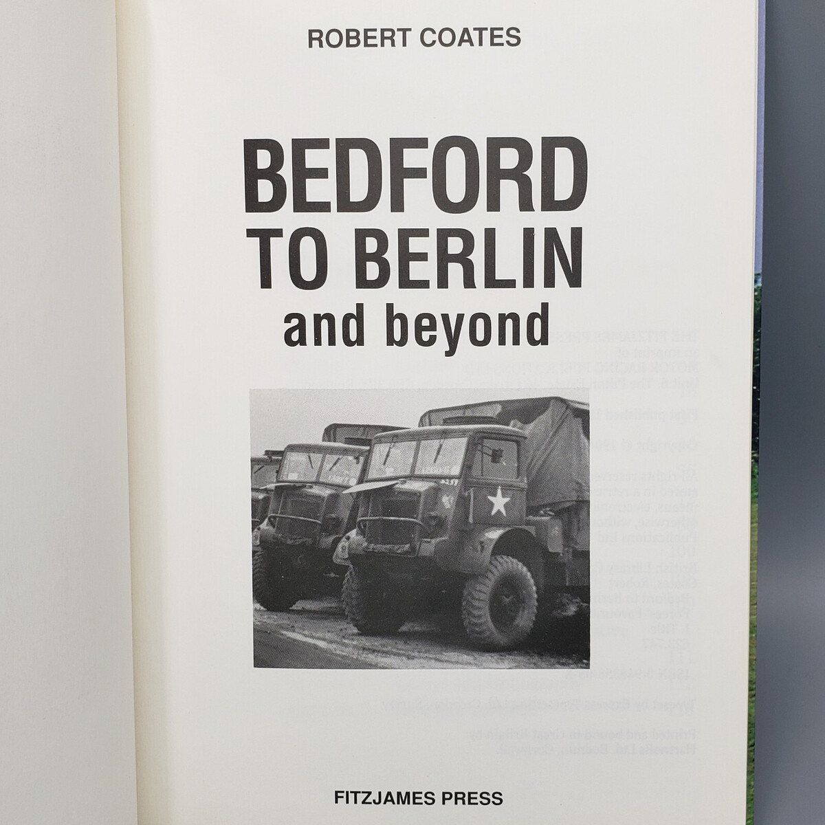 Vintage hardcover of Bedford to Berlin and Beyond, QL: The Forces' Favourite 4x4 by Robert Coates. This book was published by The Fitzjames Press in 1994 and contains numerous black-and-white photographs and drawings, along with historical information about QL load-bearing vehicles. It measures approximately 9-3/4" tall, 7-1/8" wide, 9/16" thick.