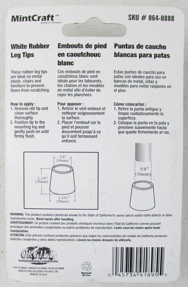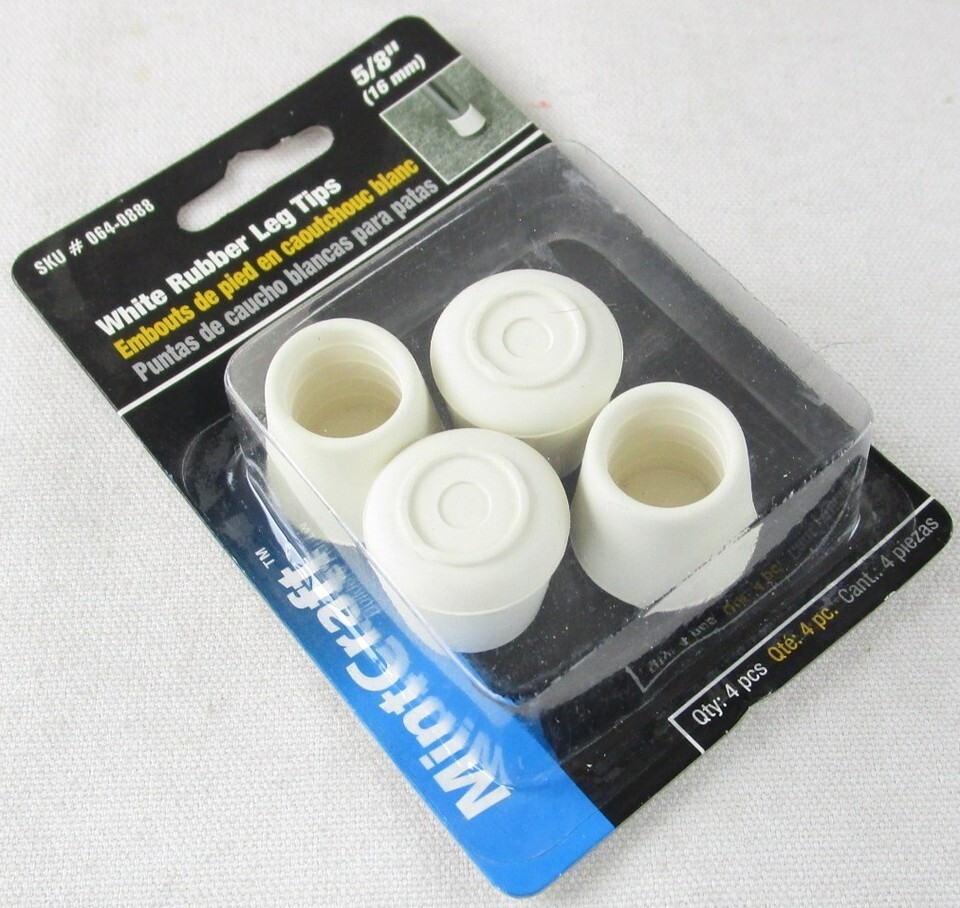 NIP MintCraft 5/8" White Rubber Leg Tips, 4 Pieces, #064-0888