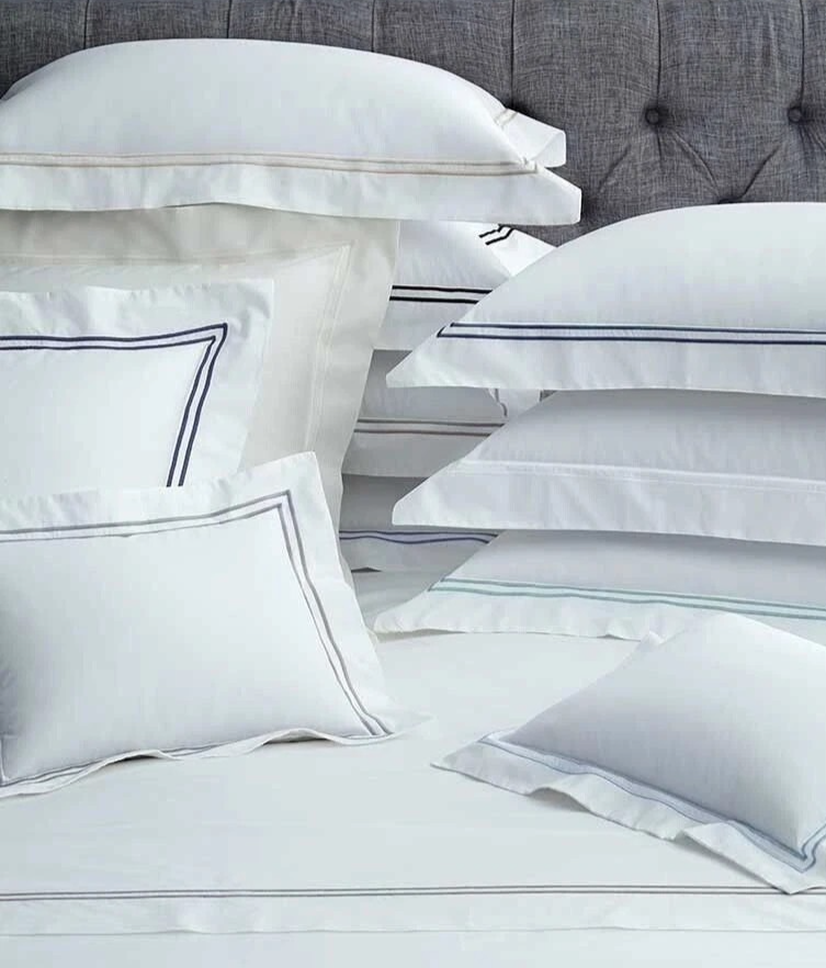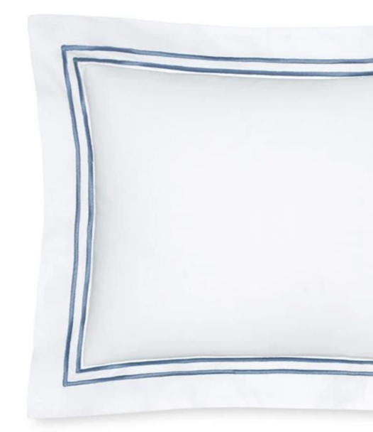 Sferra Grande Hotel Euro Sham White/Cadet Blue Double Stitch Cotton Percale New
