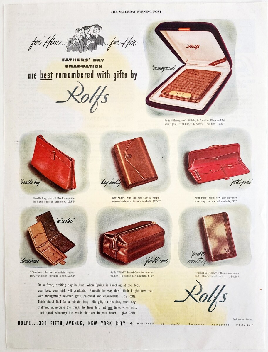 1947 Rolfs Wallets Cases Advertisement Fathers Day Gifts Leather DWJJ20