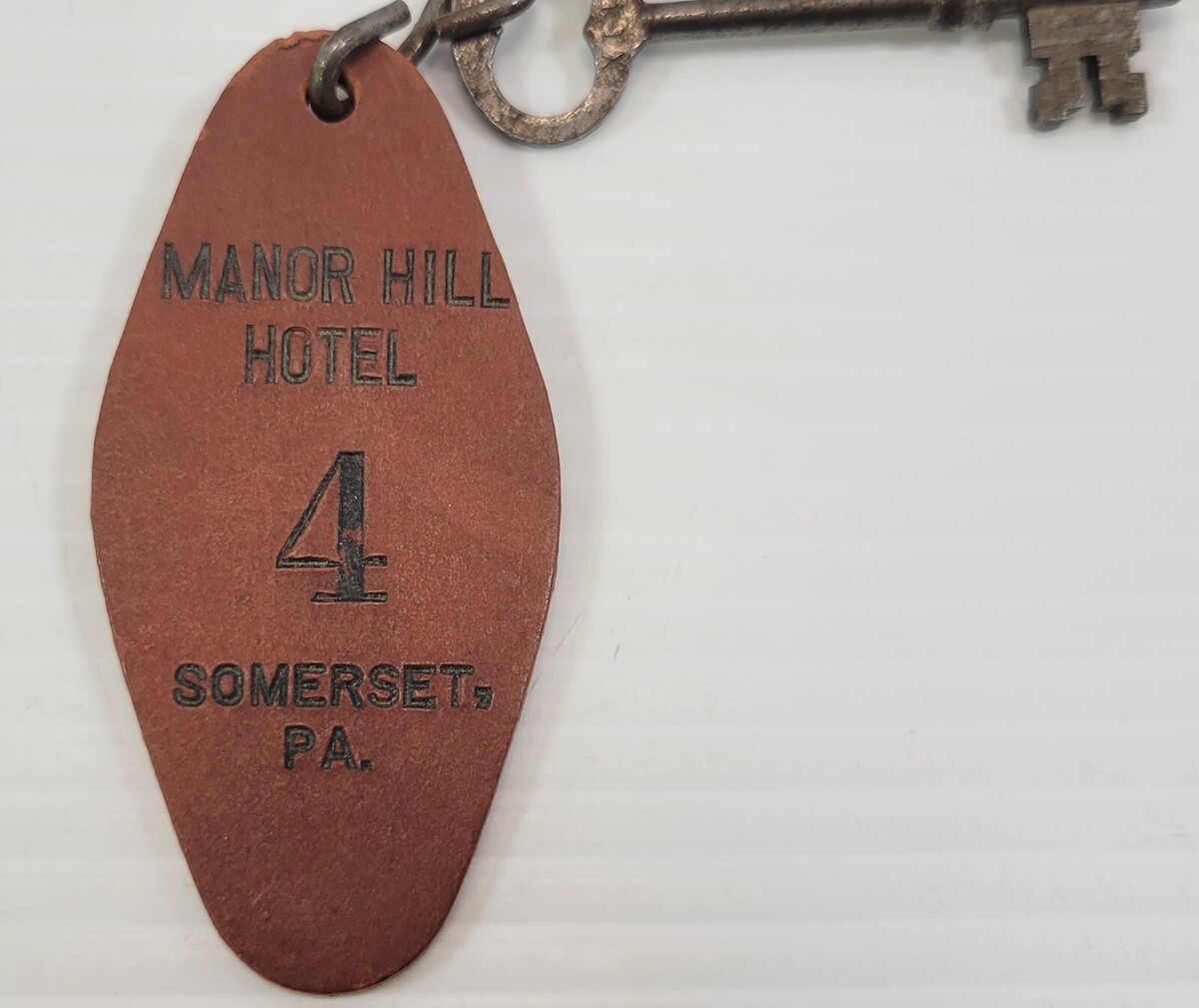 *B43) Manor Hill Hotel Somerset Pennsylvania Skeleton Room Key Leather Fob #4