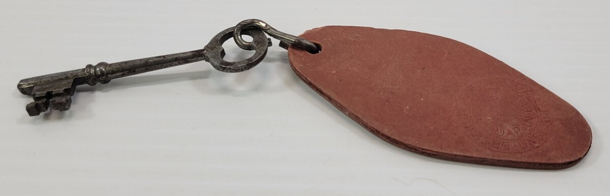 Vintage Manor Hill Hotel Skeleton Room Key with Leather Fob
