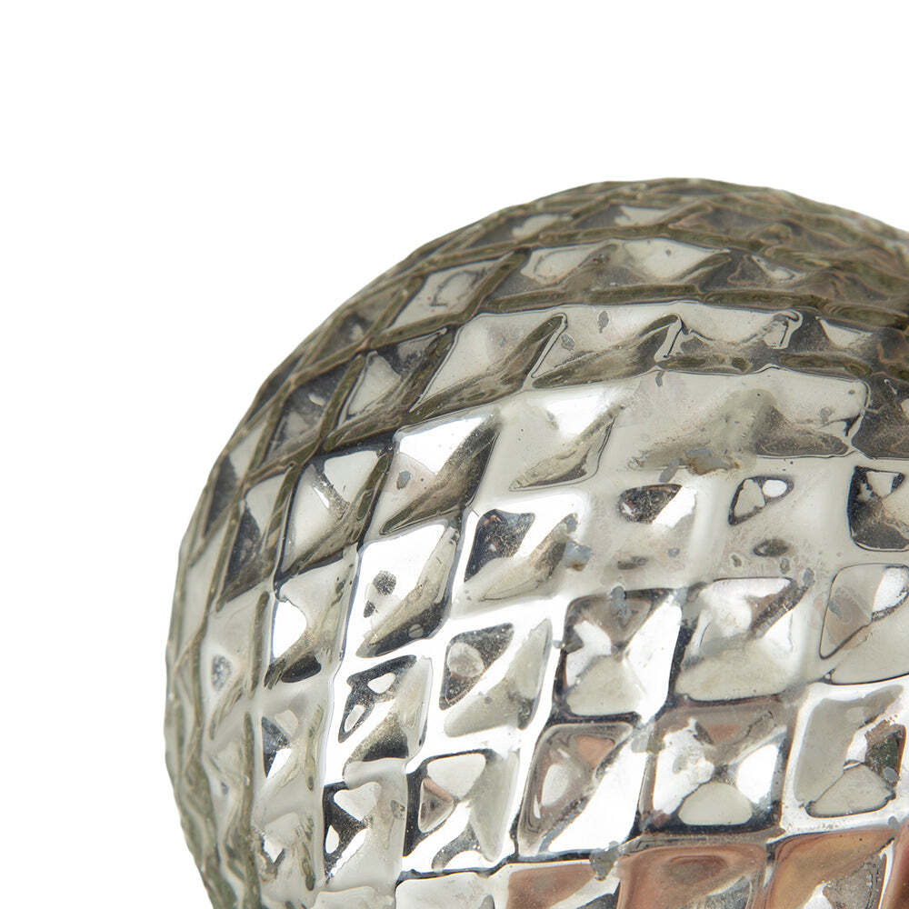 Add a little sparkle and shine to your Christmas decoration gameplan with a glass ornament. This hanging ornament boasts a sleek silver exterior and looks great on a Christmas tree. This ornament also makes for an excellent gift or stocking stuffer.