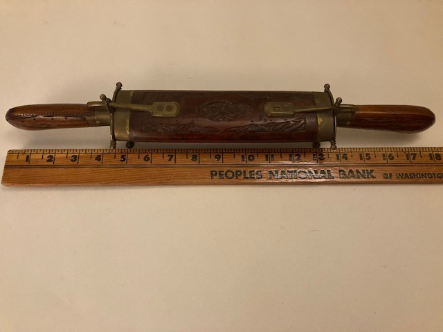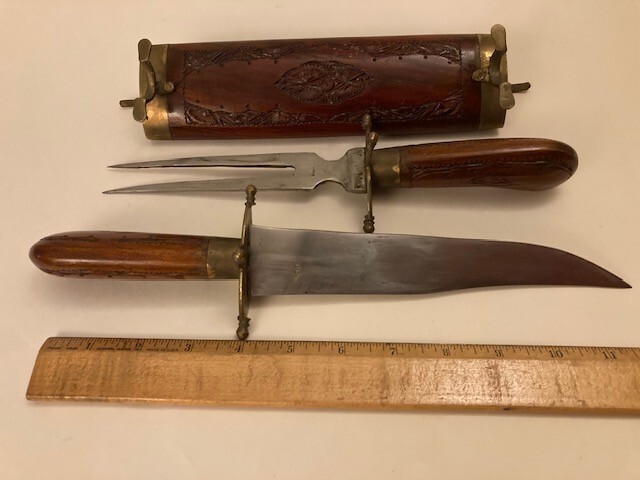 Eastern Indian Carved Wooden Wood & Brass Carving Set Fork & Knife Vintage