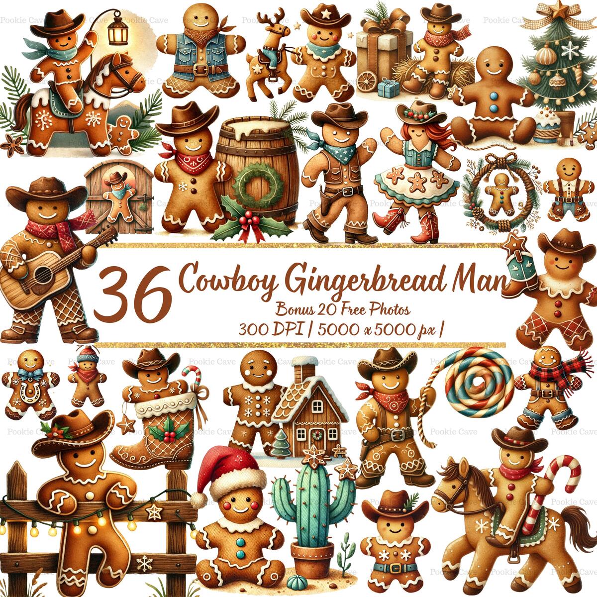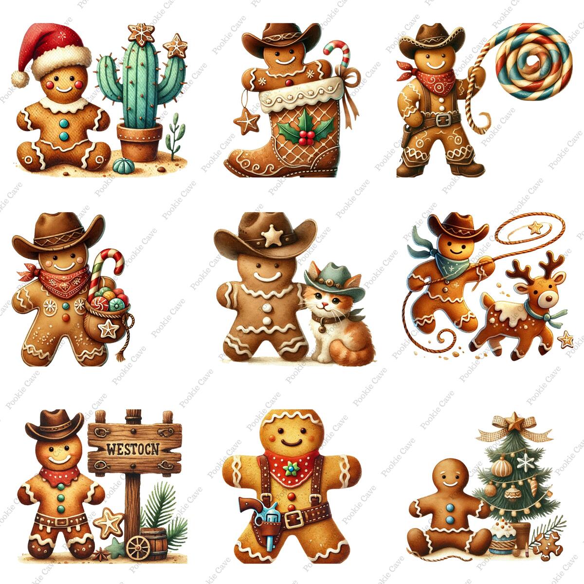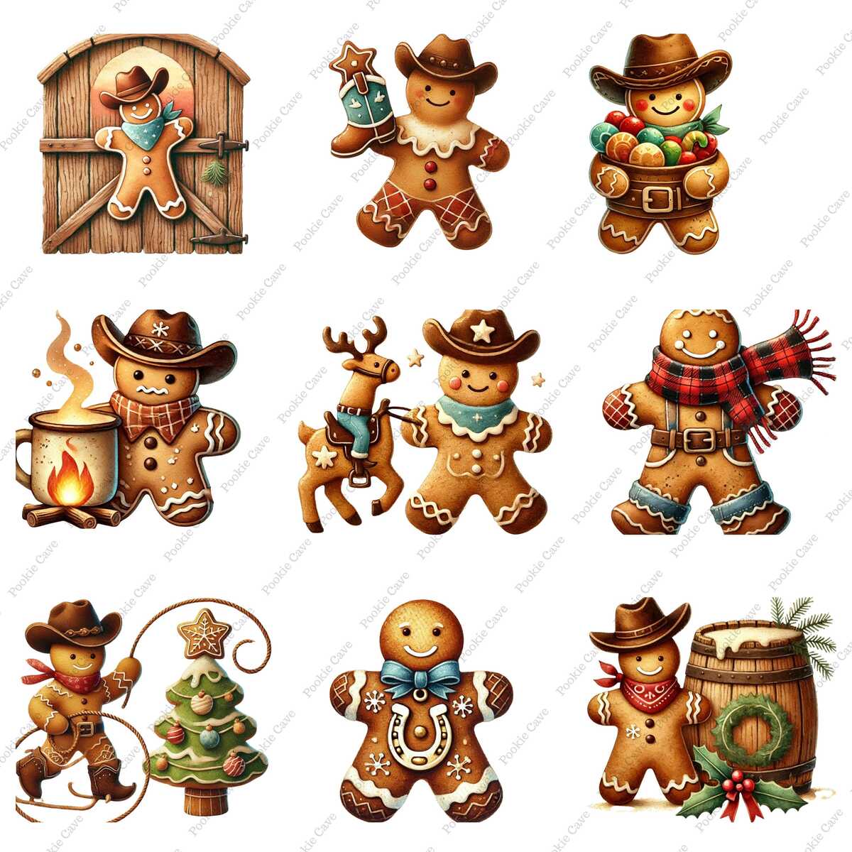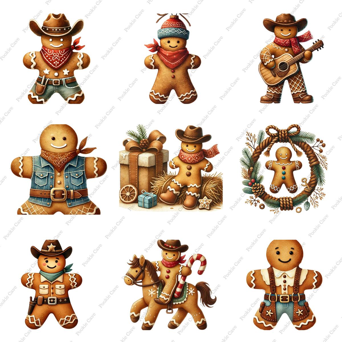 Bring a touch of rustic holiday charm to your designs with this Cowboy Gingerbread Man watercolor illustration!