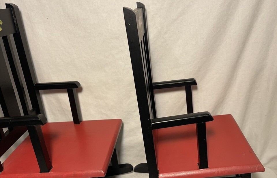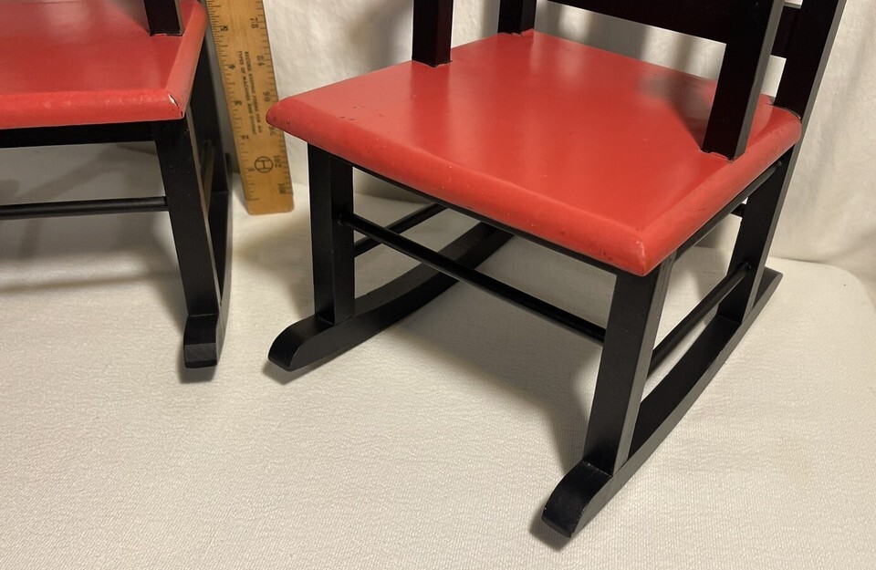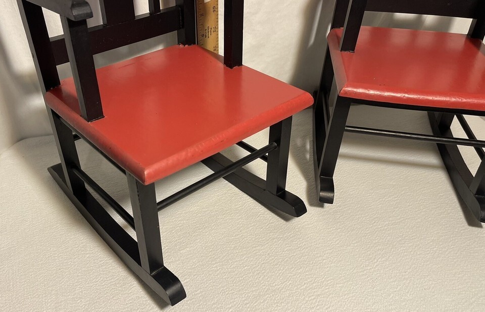 This Rare beautiful 2003 rocking chair from Sage County Merchantile is a true work of art. Crafted with care and attention to detail, this chair is sure to add a touch of elegance to any room in your home. The stunning hand-painted finish is a testament to the quality of the materials used and the skill of the craftsman who created it.