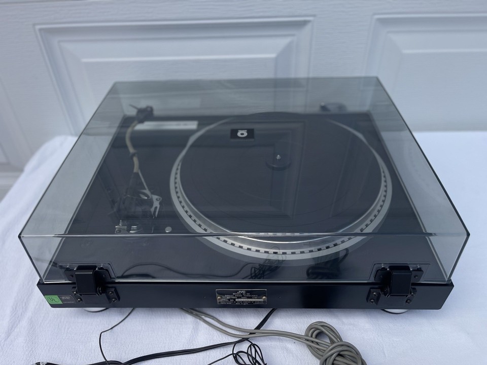 Included with the turntable is the original box, a sign of its authenticity and a guarantee of its quality. The sleek design and robust build reflect JVC's commitment to excellence, making this piece not just a turntable but a statement of audio fidelity. Enjoy the intricate details of your records as they were meant to be heard, with a turntable that's as rare in its craftsmanship as the music it plays.