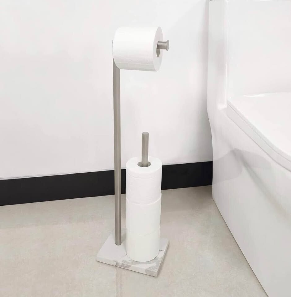Free Standing Toilet Paper Holder Stand with Reserve, Heavy Weighted Marble
