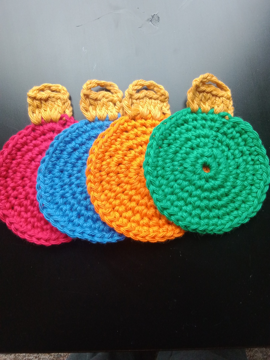 Handmade Crochet Ornament Coasters Set of 4 Green Blue Orange Red