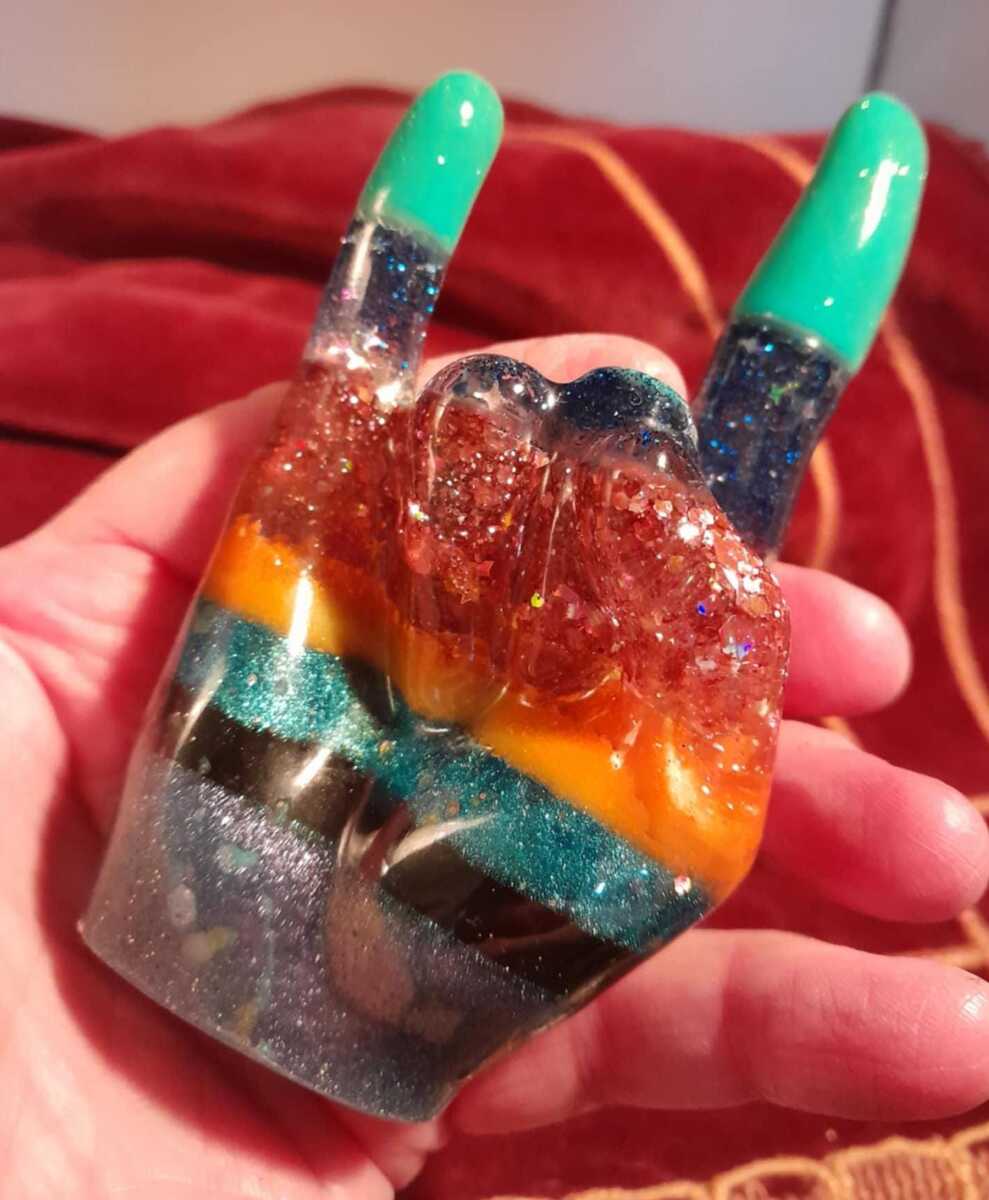 Rock N Roll will never die! This fun statue of fingers making the Rock Roll sign. One we all know, and love!