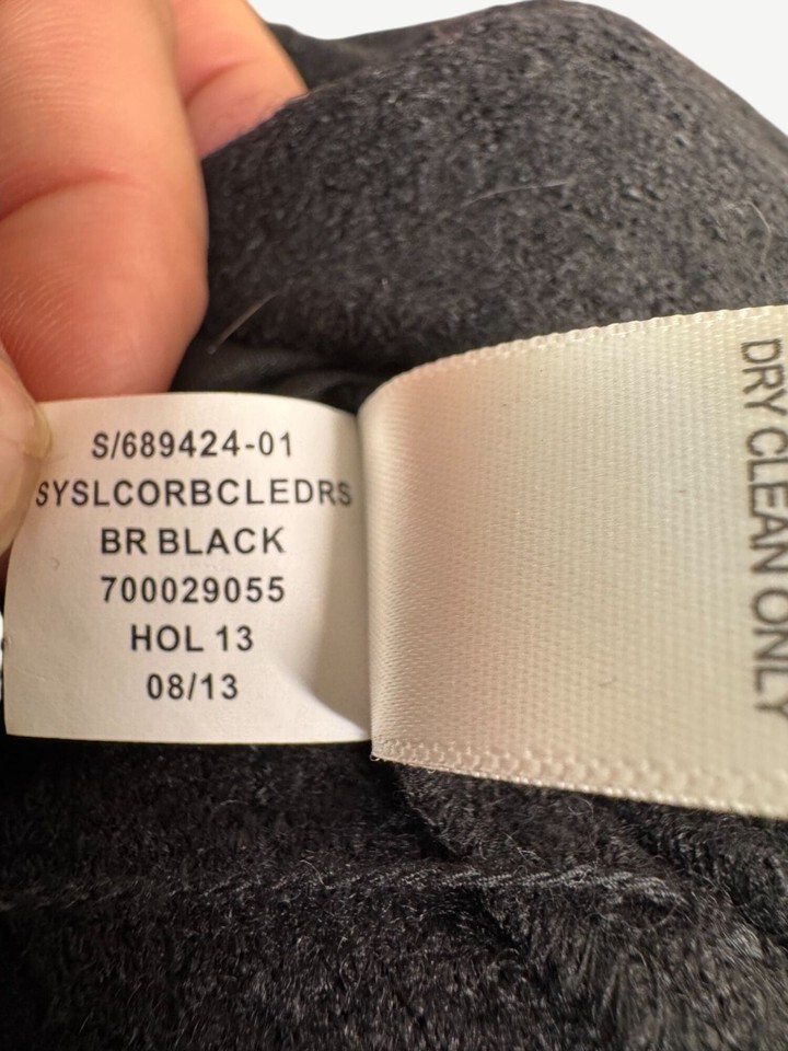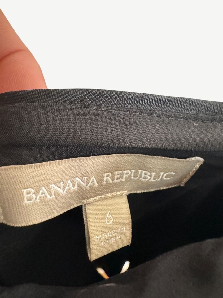 This elegant Banana Republic sheath dress features a sleek silhouette and luxurious stretch wool material, perfect for professional or formal occasions. Its classic black color and tailored fit make it a versatile wardrobe staple for any stylish woman.