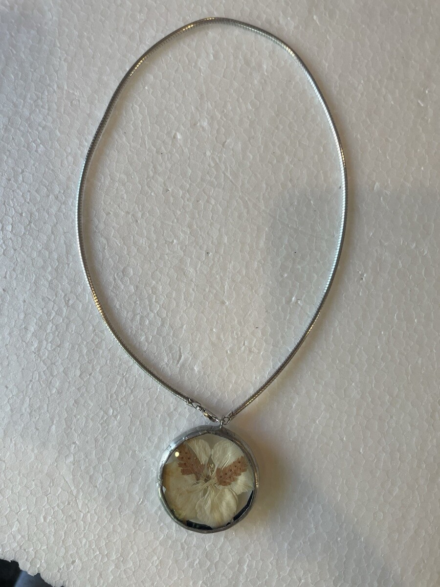 Vintage Double Pressed Flowers Between Glass Pendant Large.