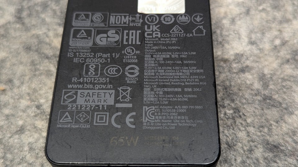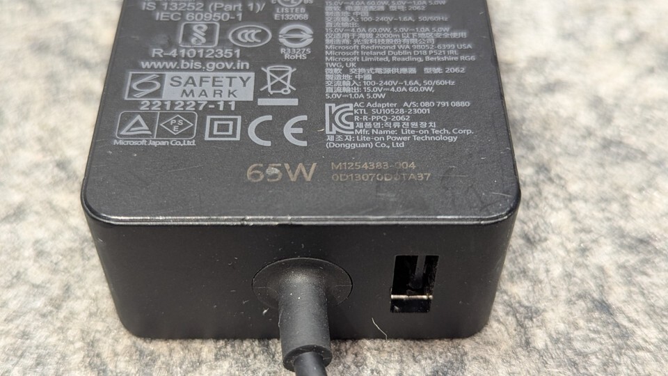 Genuine Microsoft Surface 2062 65W Power Supply Surface Pro Book 7/8/9/X Black