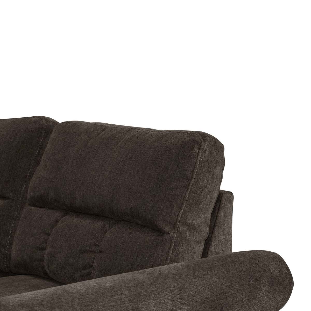 The velvet fabric covering the frame and cushions gives the sectional a soft texture and a touch of elegance.