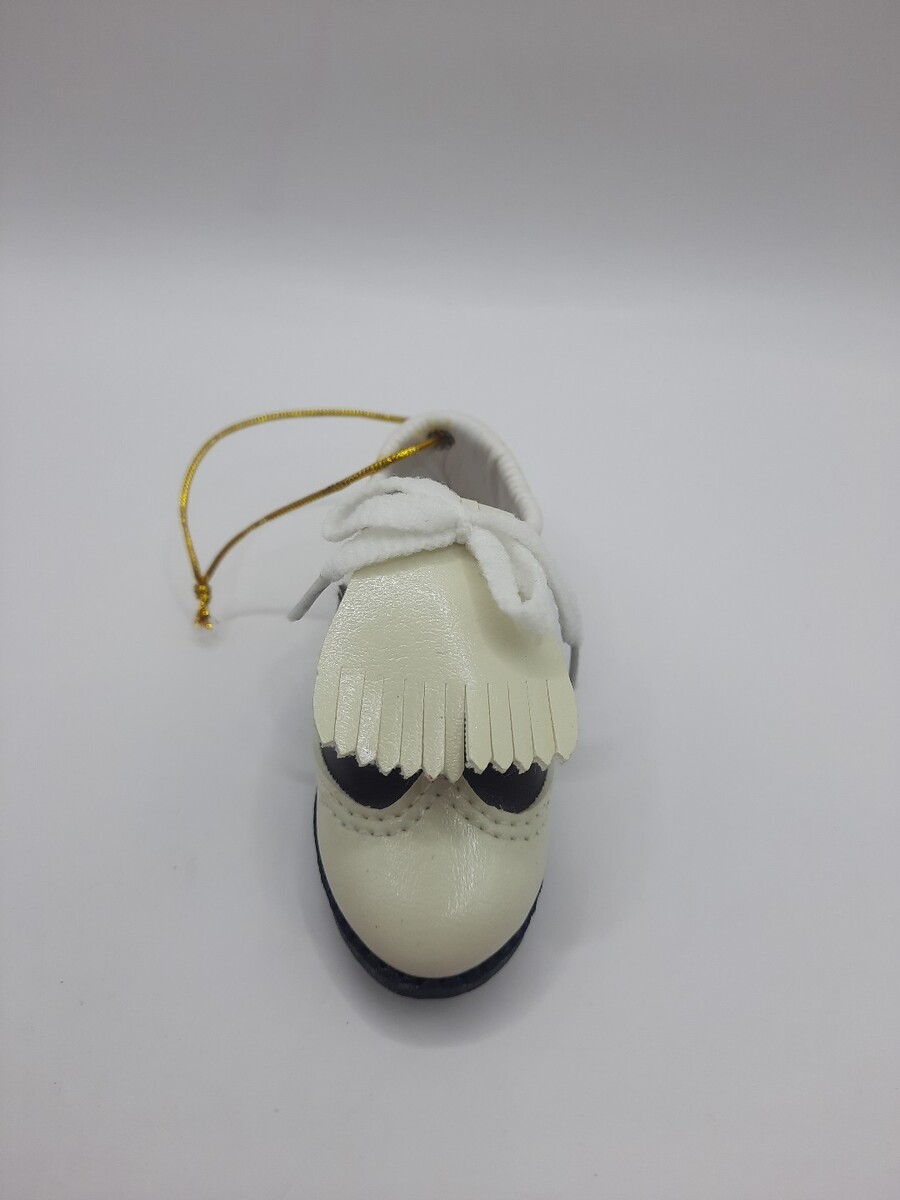 Vintage Christmas Ornament Leather Saddle Shoes Loafers Cleats Brown Tan 3.5”