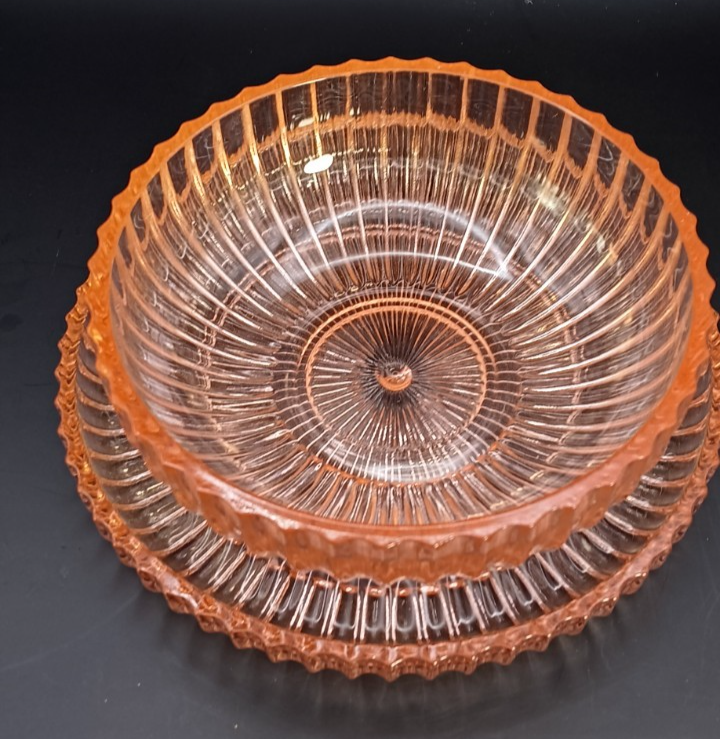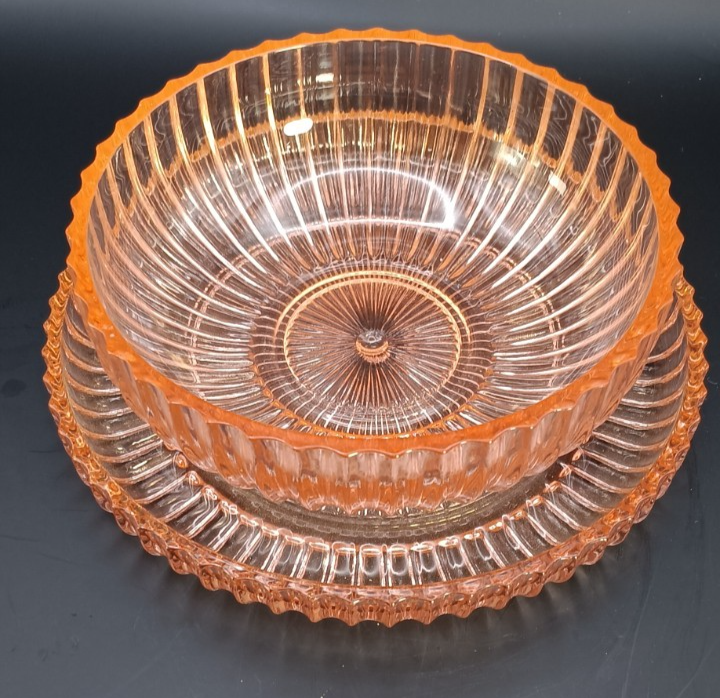 Depression Glass Anchor Hocking, Queen Marry Pink Bowl w/ Matching Underplate.